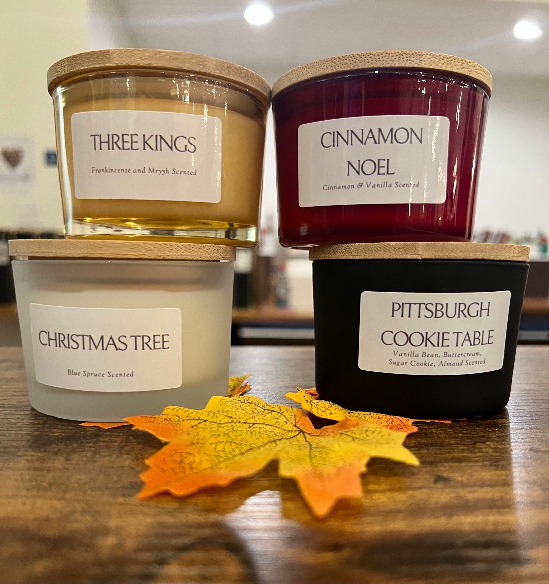 This year we're offering new scents in our lineup. We have: The Pittsburgh Cookie Table, Cinnamon Noel, Three Kings and Christmas Tree.